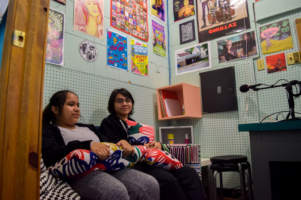 When Nine began to go to Yollocalli, her family consisted of Mere, her dad and herself. This familial structure meant that Nine had to take Mere with her wherever she went. At that moment, Nine thought to herself: “If she is going to go with me, I want her to do something too and for her to feel like a part of it and for her to not just be there because I’m there.” Thinking about this, Nine said, “Later, I saw that other people began to see her own independence and the good things that she knows how to do with art and audio. I like that we are doing the same thing but separately. She does her projects and I do mine. And we learn together even though we have a big age difference.”